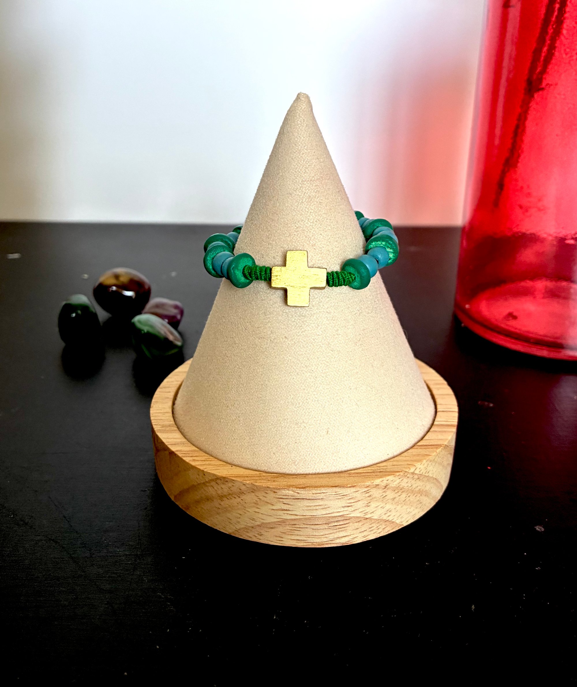 Bracelet fantaisie enfant turquoise avec croix dorée