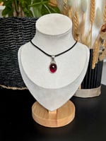 Collier avec pendentif grenat rhodolite en argent 925 sur cordon noir.